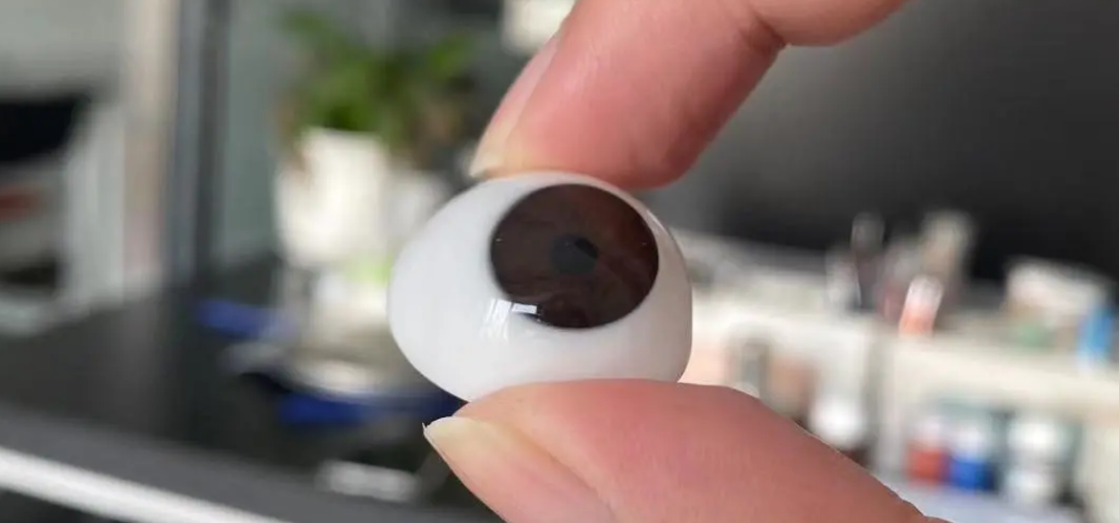 义眼是纯手工制作,从黄斑涂色、血丝分布、以及大小和形状都是义眼技师手工打磨和制作的,所以不会存在两枚一模一样的义眼,即使尺寸相同,在形状和弧度,颜色及血丝分布上也会有所差别。