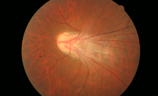 典型的眼底表现酷似一朵盛开的牵牛花,视盘增大(较正常扩大2-6倍),中央呈漏斗状深凹陷,常被绒毛状或不透明白色组织填充。